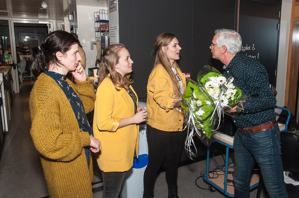 Het organiserend trio wordt in de bloemetjes gezet
