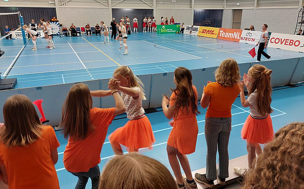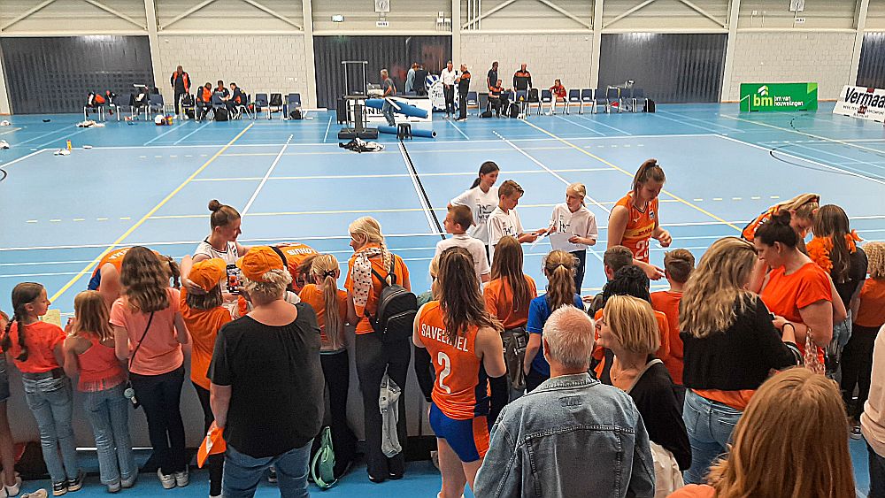 Een groep van ongeveer 40 jeugdleden en 10 begeleiders hebben zich voor de oefenwedstrijd aangemeld. De jeugd gekleed in oranje hebben de volleybaldames vol enthousiasme en fanatisme aangemoedigd. Ook de DJ was groot fan van Smash’66 uit Alblasserdam, omdat met elk liedje enthousiast werd meegezongen en gesprongen. De leden kregen waar voor hun geld (ook al was het gratis), want er werd een lange wedstrijd gespeeld. De volleybaldames hebben een 2-1 achterstand omgebogen tot een 3-2 winst. Na afloop van de wedstrijd hebben de kinderen handtekeningen kunnen verzamelen en selfies kunnen maken met de Nederlandse volleybalsters .